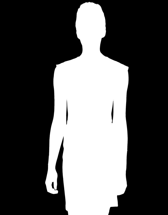 Moon shaped pieces forming a large black organza jacket. Black organza dress.